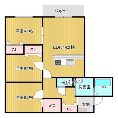| 間 取 | 3LDK LDK(14.2) / 洋室(6.5) / 洋室(6.1) / 洋室(6.1) |